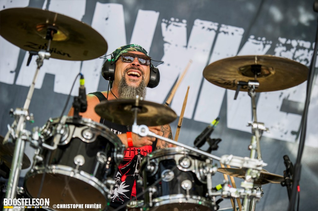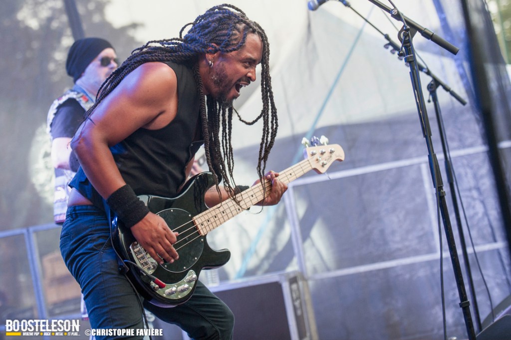 Un rugissement se fait soudain entendre. Et voici qu’arrivent, juchés sur un authentique char d’assaut, les membres de Charcoal. Et question artillerie, les Seine-et-Marnais ont bien l’intention de faire parler la poudre et le Hard-Rock sur la Furious Stage. De plus en plus à l’aise sur scène, le quatuor surprend par sa facilité, occupant la scène tel un groupe de vétérans. Quand on pense à leur premier concert il y a à peine un an, le chemin parcouru est impressionnant. Vivement l’album… A noter la présence du troublions Steeven Corsini de Locomuerte en guise de roadie, chœur, lanceur de ballons géant et artificier en confettis !