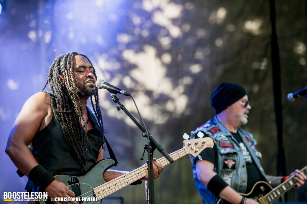 La pluie s’est un peu calmée pour l’arrivée sur la Furious Stage de Jolly Joker (Espagne). Les Ibères nous régalent avec leur Rock Hard. Ça swingue, ça groove, bref, ça fleure bon les années 80. Solos imparables, rythmique d’enfer, attitude, tout est parfait pour finir cette soirée. La réaction du public laisse à penser que ce revival Hard Rock, après la course aux décibels et à la violence de ces dernières décennies, qu’un retour aux sources semble s’opérer, et ce n’est pas pour nous déplaire !