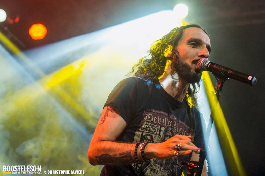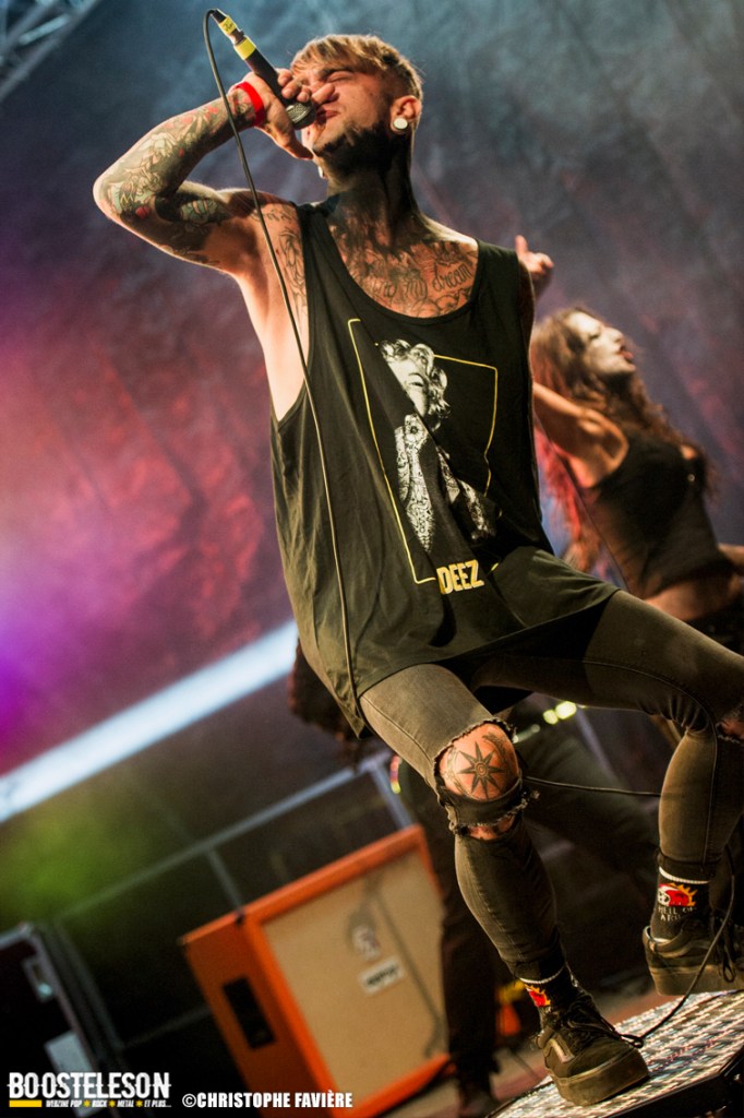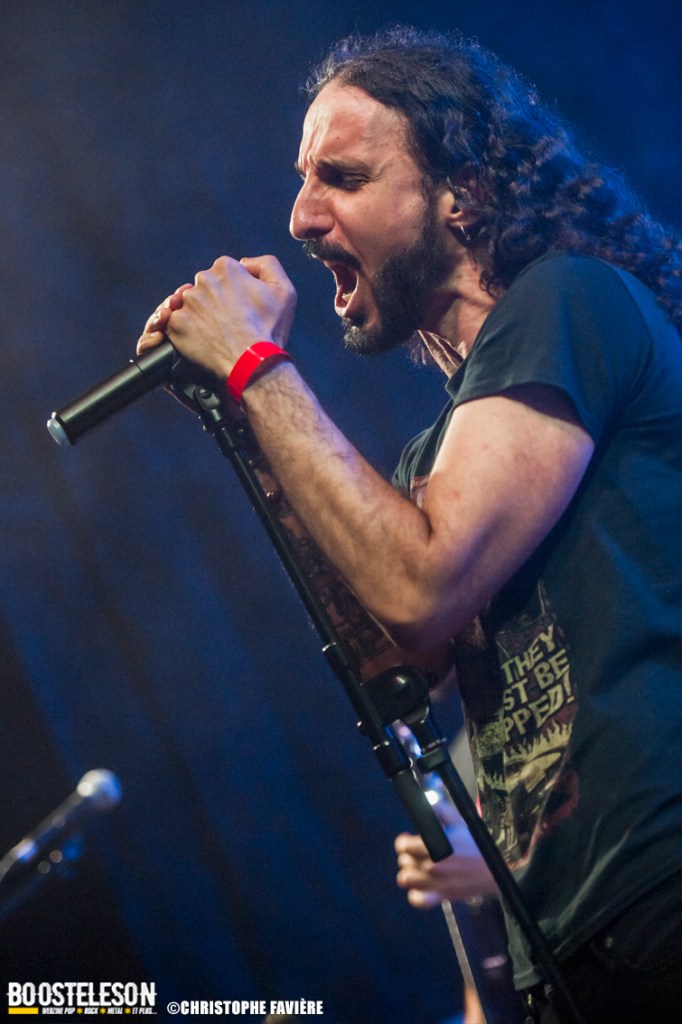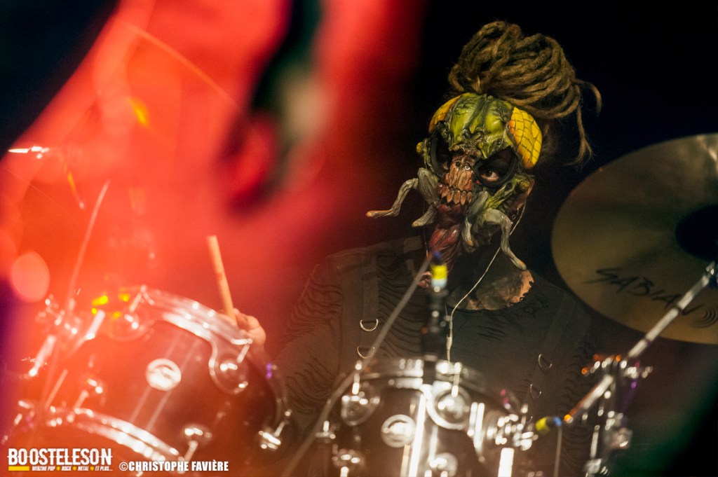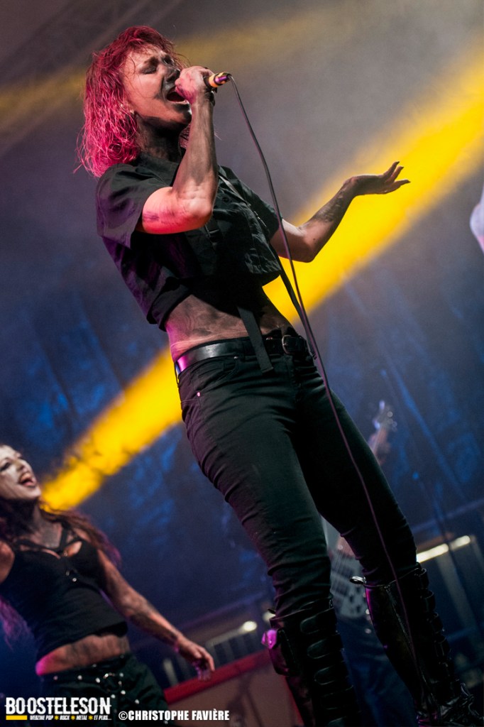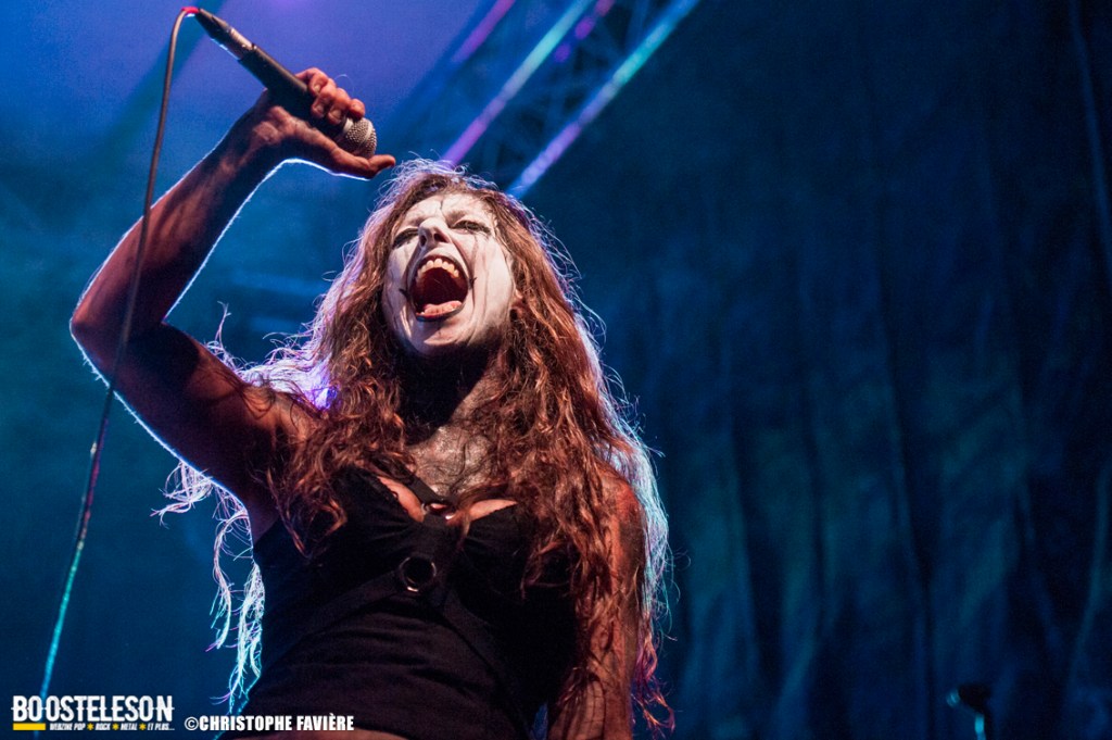 Premier groupe étranger de la programmation, Octo Crura (Italie) nous entraînent dans leur univers horrifique de manière plus que puissante. Savant mélange d’Indus, de Death et de Neo Metal, les références à des groupes comme In this Moment, Jinjer, Arch Enemy, Butcher Babies ou encore Infected Rain sont évidentes. La mise en scène est raccord avec l’ambiance de film d’horreur qu’inspire la musique. Grimés en monstres les musiciens — des pointures sois-dit en passant — accompagnent les deux chanteuses prenant chacune leur tour le lead et alternant chant clair et growl. Une bien belle découverte !
