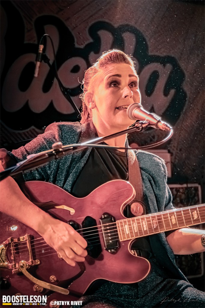 20h00, une salle déjà bien remplie accueille Ady – One Woman Band, qui prends place sur une chaise au milieu de la scène. La Tourangelle, (L’Ange de Tour en Français) proposera un set solo guitare, cigare box et percussions au pied et le tout en chantant d’une voix claire et puissante son Blues qui lui a valu récemment le premier prix France/Blues, catégorie Solo/Duo lui permettant de représenter la France, comme elle le dit si bien, à « l’international blues de Memphis Bordel !! », rien que ça ! Et c’est bien mérité. Pas simple d’être une Bande de filles à elle toute seule avec cette ambiance intimiste et minimaliste et pourtant Ady a su, avec son Blues sans concession et son sourire charmeur, créer une proximité avec le public. Très bonne idée de descendre dans la salle faire jouer des spectateurs. Bravo Madame Ady, au plaisir de recroiser votre route, Rendez-vous au prochain « Crossroads »