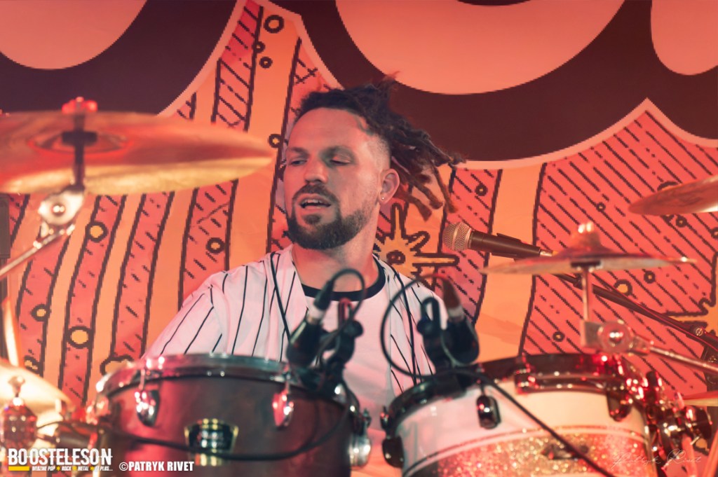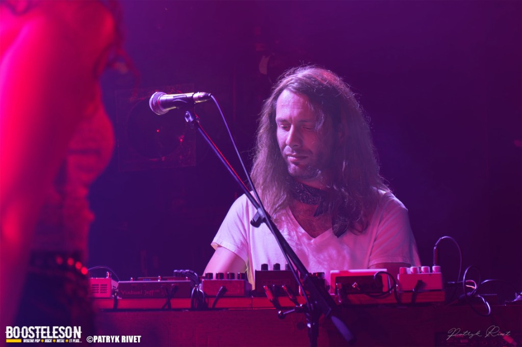 En s’appuyant sur une solide section rythmique avec Aurelien Herson-Macarel à la Basse et impressionnant aux chœurs, Fabien Rault Beuh-Fa toujours aussi carré à la batterie, Lucas Itié nous a gratifié de solos remplis de virtuosité et de sensibilité. Sacré touché Monsieur Lucas ! Shax Clavi n’était pas en reste au clavier, il a lui aussi participé à cette féérie musicale en rappelant à tout le monde, grâce à son talent et son feeling, que le clavier n’est pas qu’un instrument d’accompagnement dans un groupe Rock.