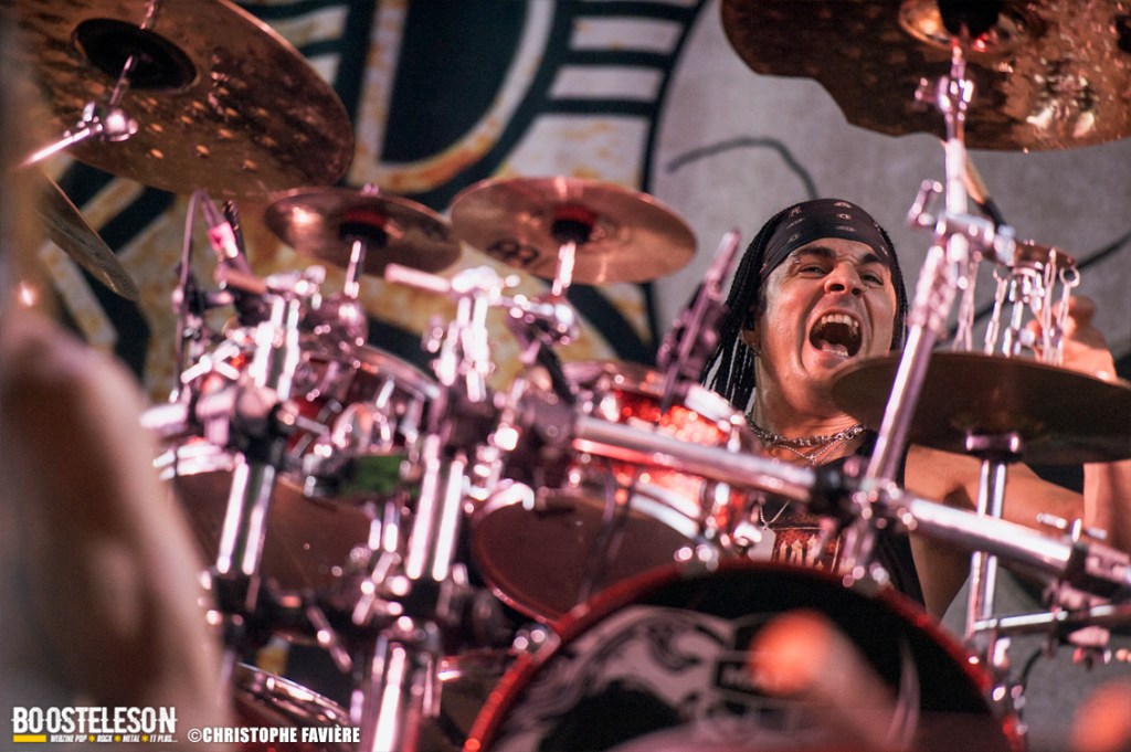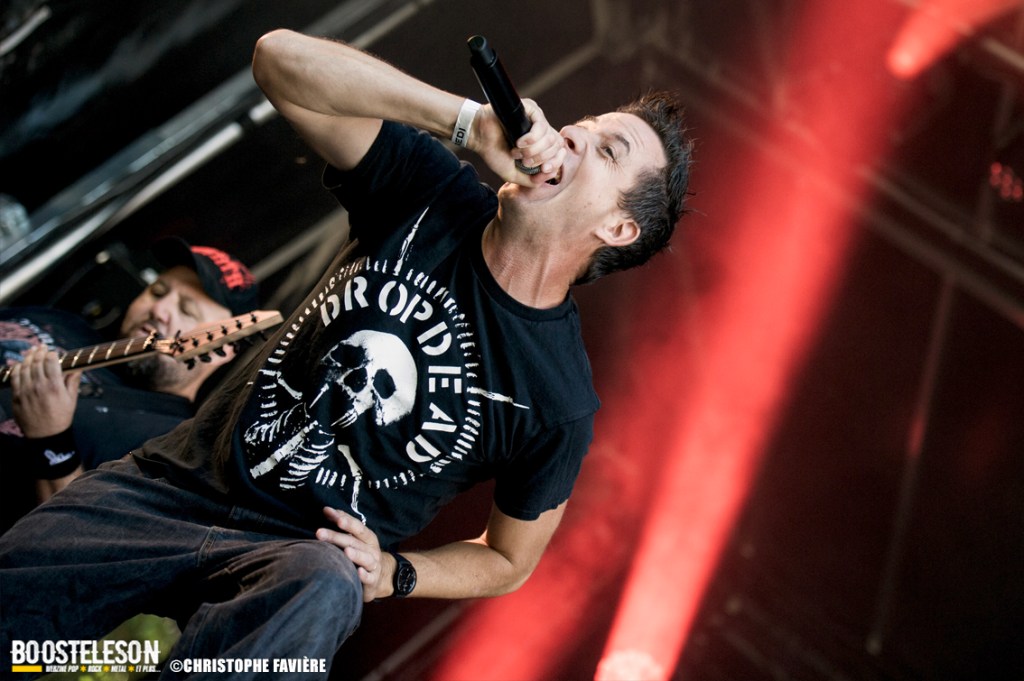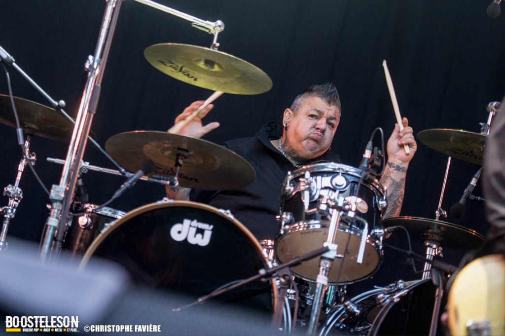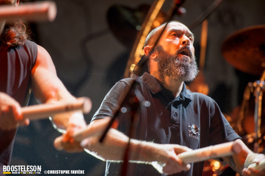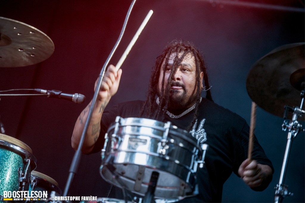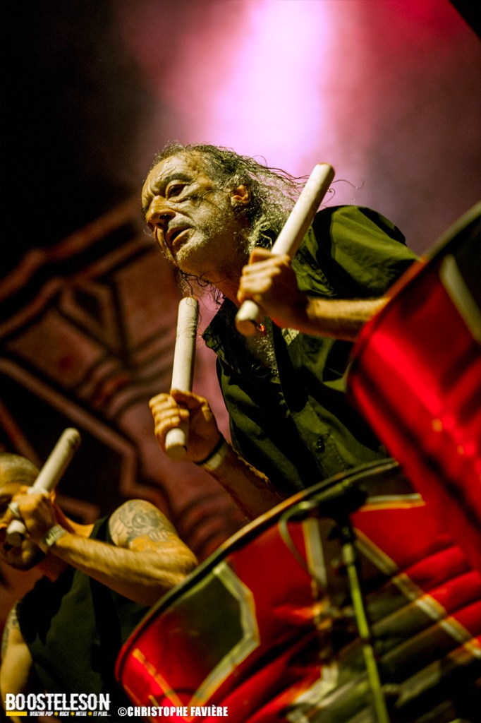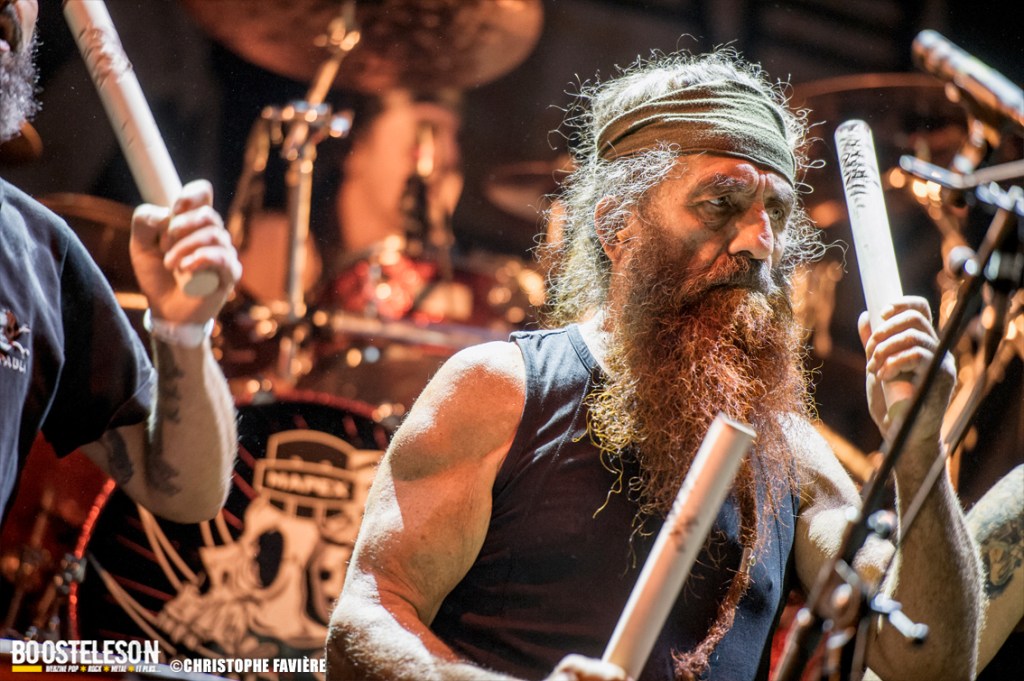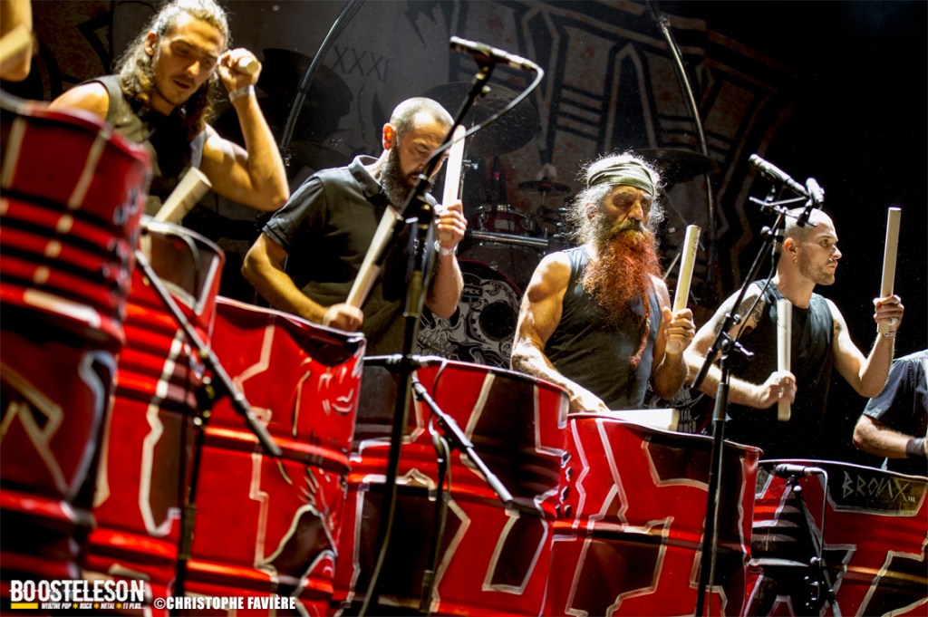 Et ça attaque fort dès le vendredi sur la Menn’ Stage avec Witchorious et leur Heavy Doom puissant et ultra efficace, suivi sur la Eye Stage par le Blackened Death de Sanctuary qui malgré le peu de public à cette heure, assureront un set High Energy. La première claque du week-end arrivera avec Red Gordon avec leur mélange de Hardcore et de Nu Metal à la Slipknot. Le chanteur nous gratifiera d’une performance de haute volée. Musicalement et visuellement parfait ! Autre bonne surprise du côté de la petite scène avec le set de E.O.N. (Element Of Noise), les Toulonnais nous livreront un show ultra violent contrastant avec la joie visible sur leurs visages de faire leur premier concert aussi près de Paris. Un savant mélange de Punk, de Thrash et de Death bien dosé pour la bagarre ! Premier gros groupe international à fouler la grande scène, Ill Niño ne feront pas non plus dans la dentelle avec Tommy Vext au chant en remplacement de Marcos Leal ne pouvant assurer la tournée Européenne pour finalement quitter le groupe fin septembre. Leur Nu Metal à la sauce Latino va mettre tout le monde d’accord. Il est étonnant que ce groupe soit si tôt dans la programmation, on aurait bien pris un peu de rab de salsa piquante… Autre scène, autre pays, autre ambiance avec les Tchèques de Hypnos et leur Death Metal à base de riffs bien lourds et bien gras. Le site s’est bien rempli lorsque Les Tambours Du Bronx prennent possession de la grande scène. Toujours accompagnés par Reuno et Stef Buriez au chant mais sans Renato Di Folco. Les percussions toujours aussi efficaces se marient à merveille avec le Metal délivré par Franky Costanza, Sid, Arco Trauma, Ben et Dom. La reprise de « Roots » (Sepultura) mettra tout le monde d’accord, et celle de « Dragula » (Rob Zombie) conclura un concert des plus « percutant » ! Les Belges d’Ancient Rites vont clôturer la soirée sur la Eye Stage avec leur Black Metal Thrashisant aux relents Viking/ Folk. Encore un gros changement d’ambiance pour conclure ce vendredi avec l’arrivée sur la grande scène des Finlandais de Korpiklaani. En une fraction de seconde le parc de Villeroy se transforme en une immense taverne de pirates. Ça chante, ça dance, ça lève son verre en reprenant les refrains du groupe, qui s’en donne à cœur joie sur scène et conclura le set avec leur hymne « Vodka » !