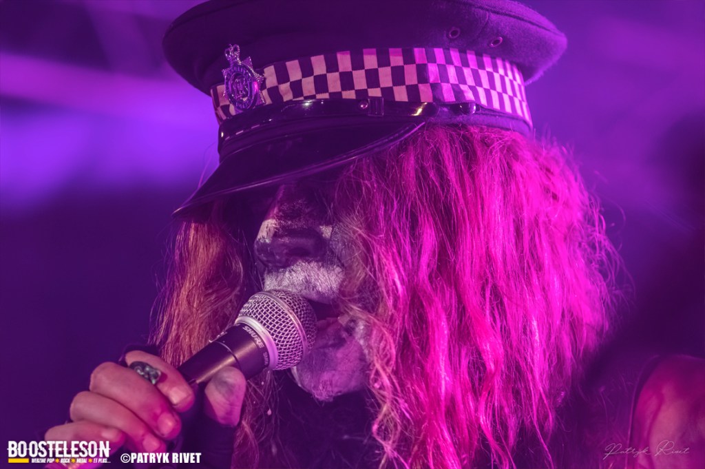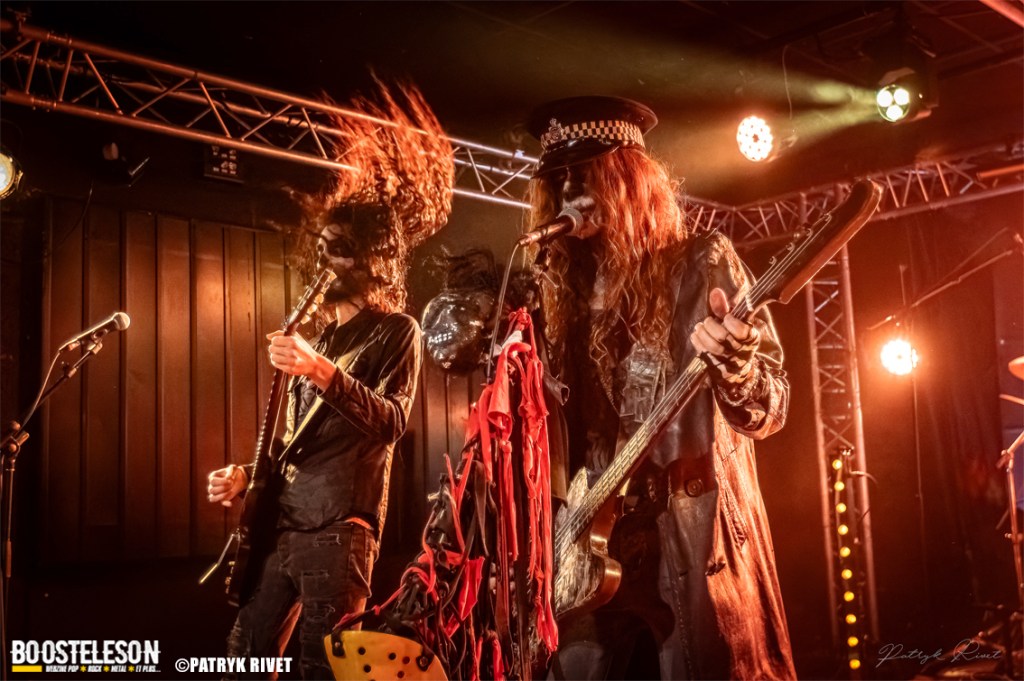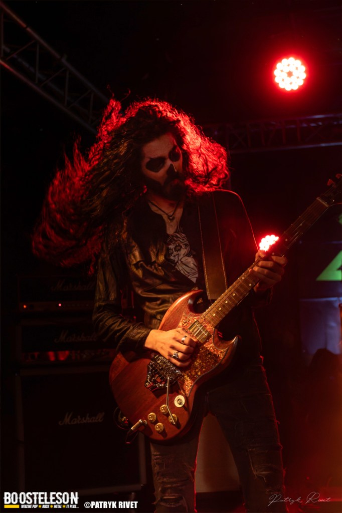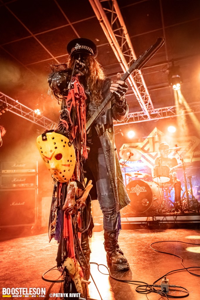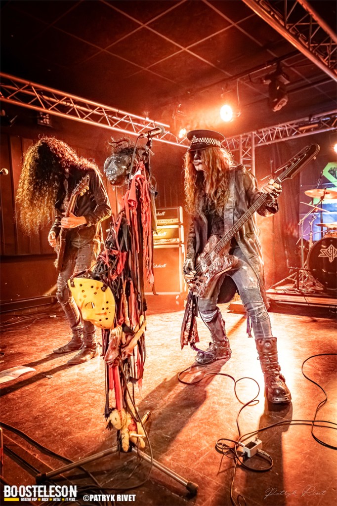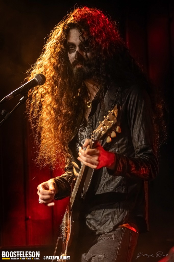 La soirée se poursuit avec une immersion dans les contes de la crypte, magnifiquement orchestrée par le quatuor freak de Sleazyz, maquillés et habillés avec un style qui ferait fuir instantanément la plus cool des belles-mères ! Sleazyz se définit comme du Horror Metal Sleaze et propose un mélange décadent de punk, de metal, de glam et de sleaze. Fred Deceased (basse et chant lead), Pandemonium (guitare) Thomas Healstone (guitare) et Raph El Rafale (batterie) sont les rejetons non reconnus d’Alice Cooper et de Rob Zombie ! Leur set démarre par « Psycho Witch » tiré de leur album March Of The Dead (2021), avant d’enchaîner par « Necromancer », titre aux accents hardcore issu de leur dernier album Glitter Ghoulz From Hell (2023), une chose est sûre ces troyens ne font pas dans la dentelle et c’est tant mieux. Leur set fait la part belle à Glitter Ghoulz From Hell et se termine sur « Life Will Never Be The Same » titre aux accents Ramones qui remporte l’adhésion du public.