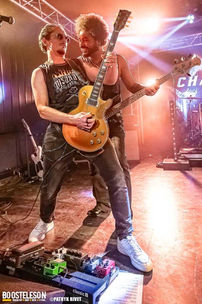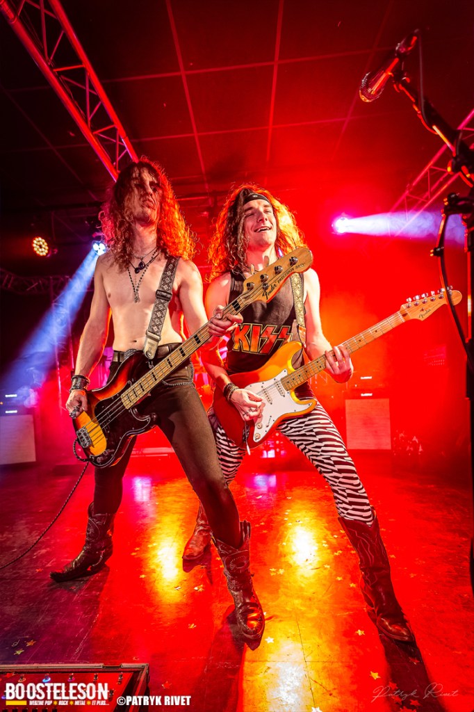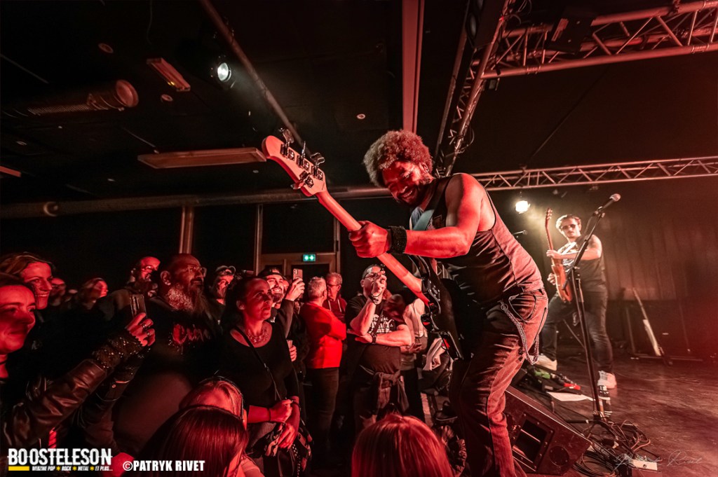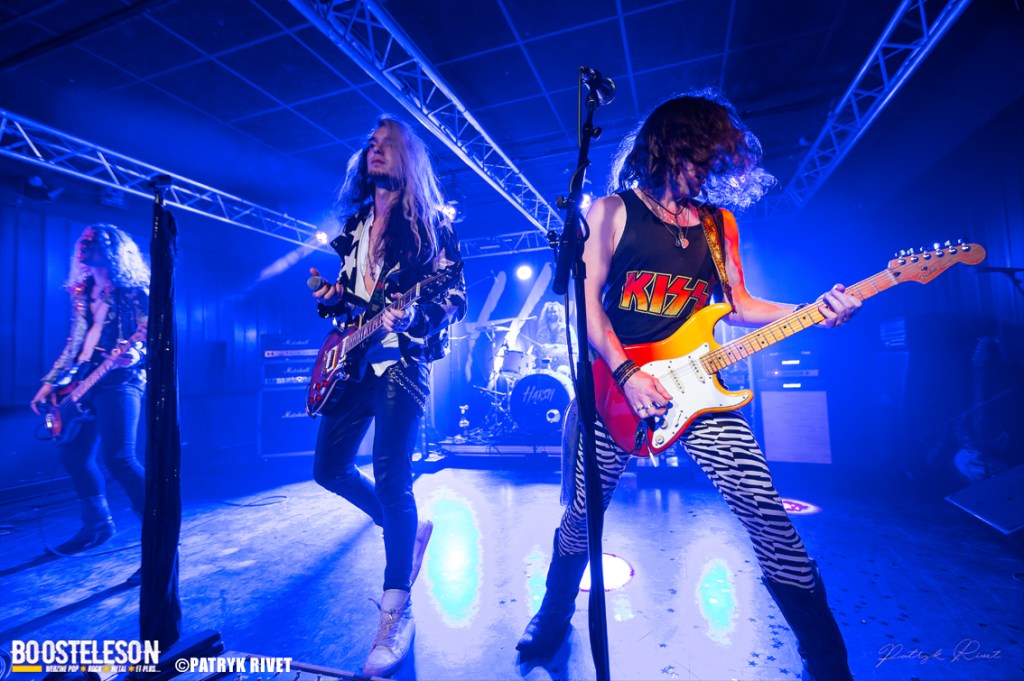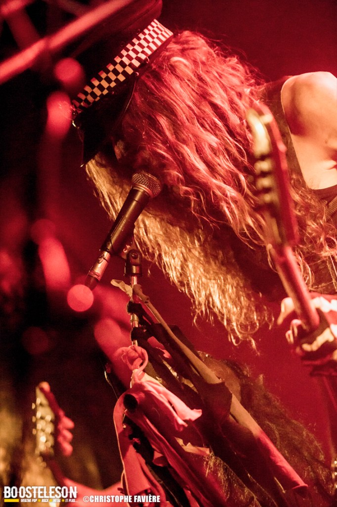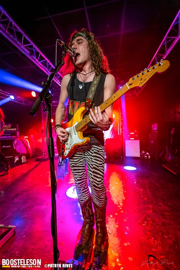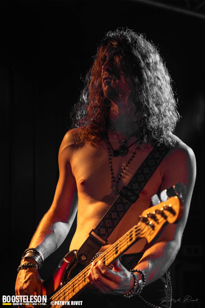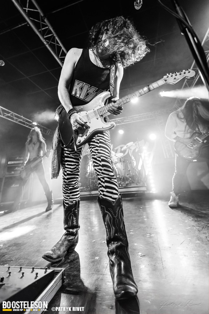 Les Harsh sont tombés dans la marmite Hard/Glam Rock il y a longtemps puisque Albert (chant-guitare) et Julien (basse) se connaissent depuis l’école maternelle ! Malgré leur (jeune) âge le groupe a déjà pas mal vadrouillé en Europe et s’est déjà frotté à des premières parties de groupes comme Anvil ou The New Roses. « Love Me, Please Love Me » de Polnareff en guise de musique d’intro avant un départ explosif, un seul EP au compteur et quelques singles n’empêchent pas le groupe de nous proposer un set réglé comme une horloge avec quelques nouveaux morceaux dont « Don’t Mess With Me » joué sur scène pour la première fois en France. On retrouvera avec bonheur « The Sound She Does » (EP – Out Of Control) morceau narrant l’histoire de la première voiture du groupe offerte par le grand père d’Albert, avec le solo de guitare à la Van Halen. Et quitte à être sur la route autant faire plaisir à nos oreilles avec un bon vieux « Born To Be Wild » agrémenté de belles harmonies vocales. On se régale des envolées guitaristiques d’Albert et Séverin, toujours bien senties et jamais indigestes, surtout quand ils nous offrent une petite battle juste avant « Tease Me » morceau clin d’œil aux breuvages houblonnés histoire de reprendre des forces pour mettre le feu au dancefloor sur leur récente reprise de « Maniac » de Michael Sembello. Le set se termine sur « Good Lovin’ », en guise de rappel, on retrouvera Harsh accompagnés des 3 autres groupes pour une version dantesque et très Rock ‘N’ Roll du classique « Johnny B. Goode ». Sans aucun doute ces 4 garçons dans le vent ont désormais atteint un statut leur permettant de rêver plus haut et on attend avec impatience leur album annoncé fin 2025, début 2026. A noter que le groupe sera encore sur la route en 2025 avec une date en acoustique le 9 février aux Berthom (Paris) dans le cadre des « Dimanches de Metal In Paname » et le 14 mars à la MJC de Savigny Sur Orge (91) pour les Apéros Metal du 91.