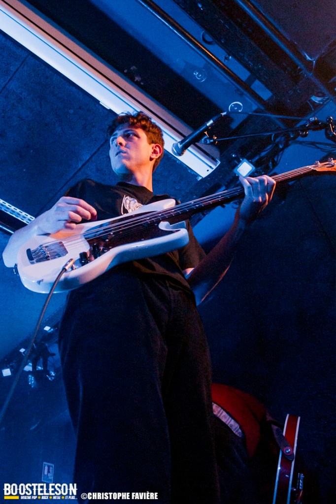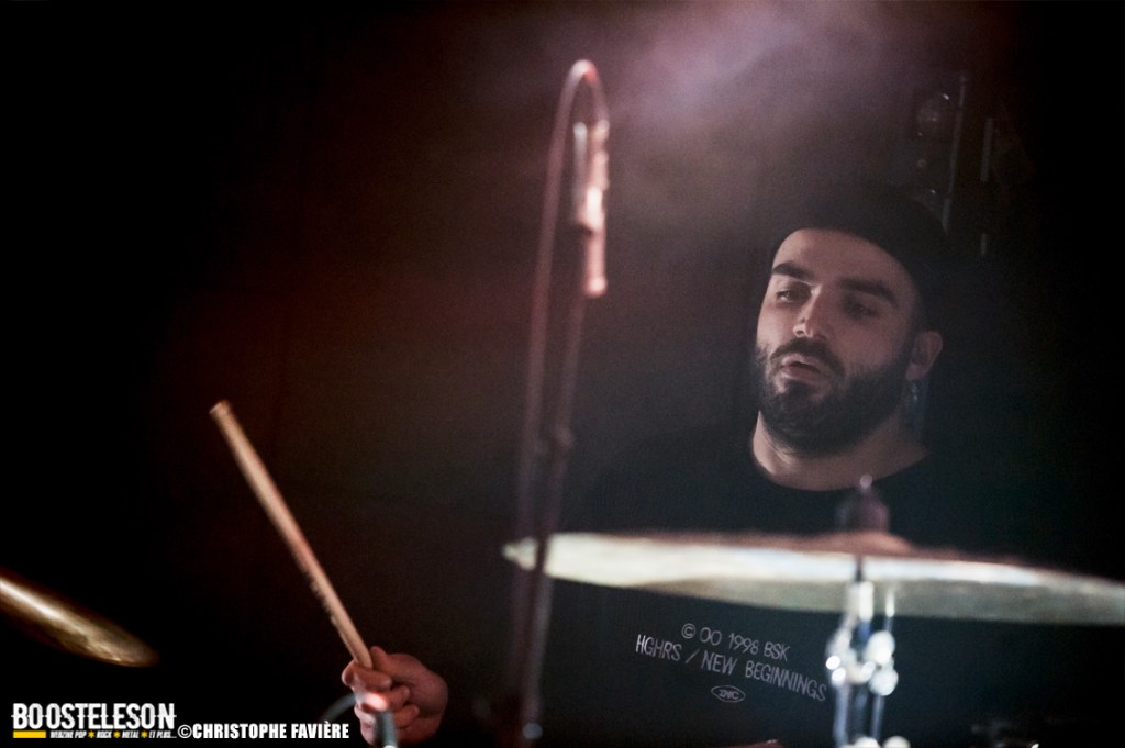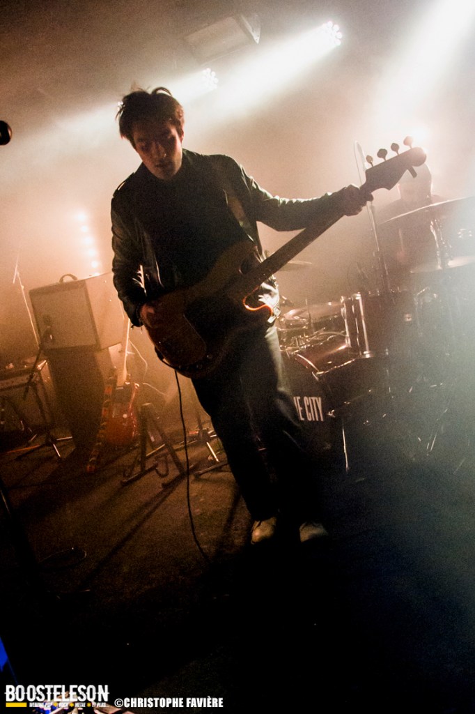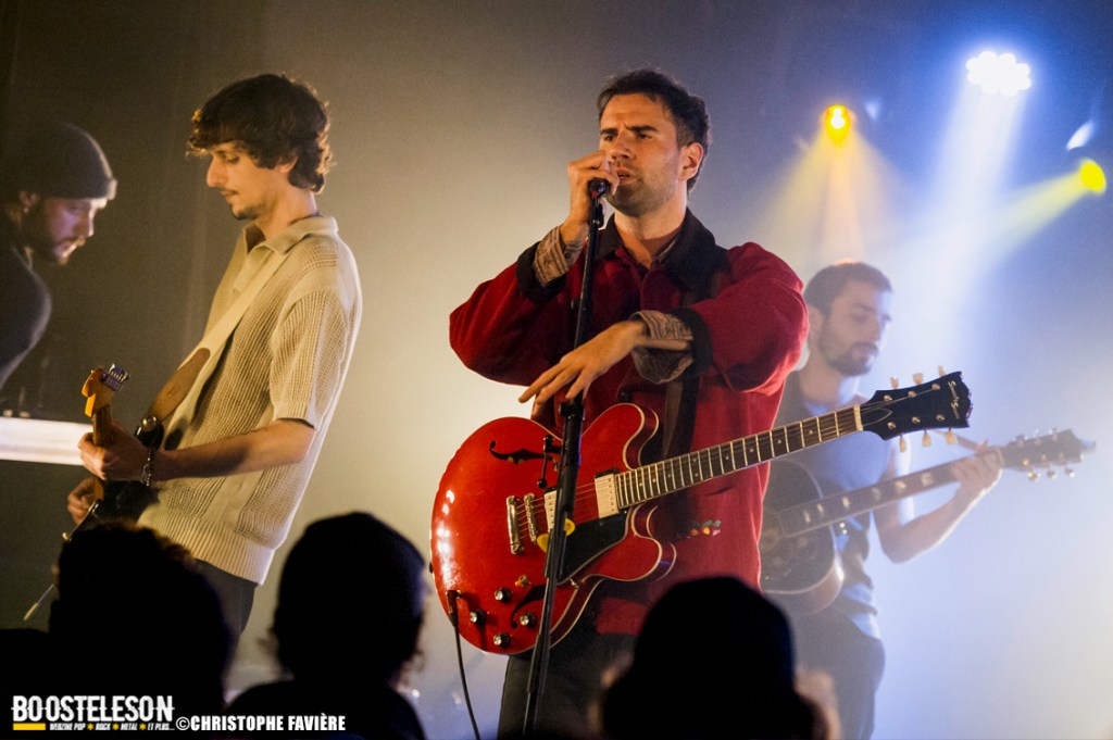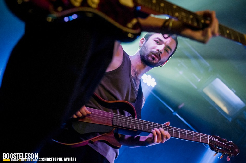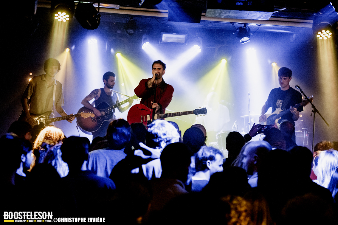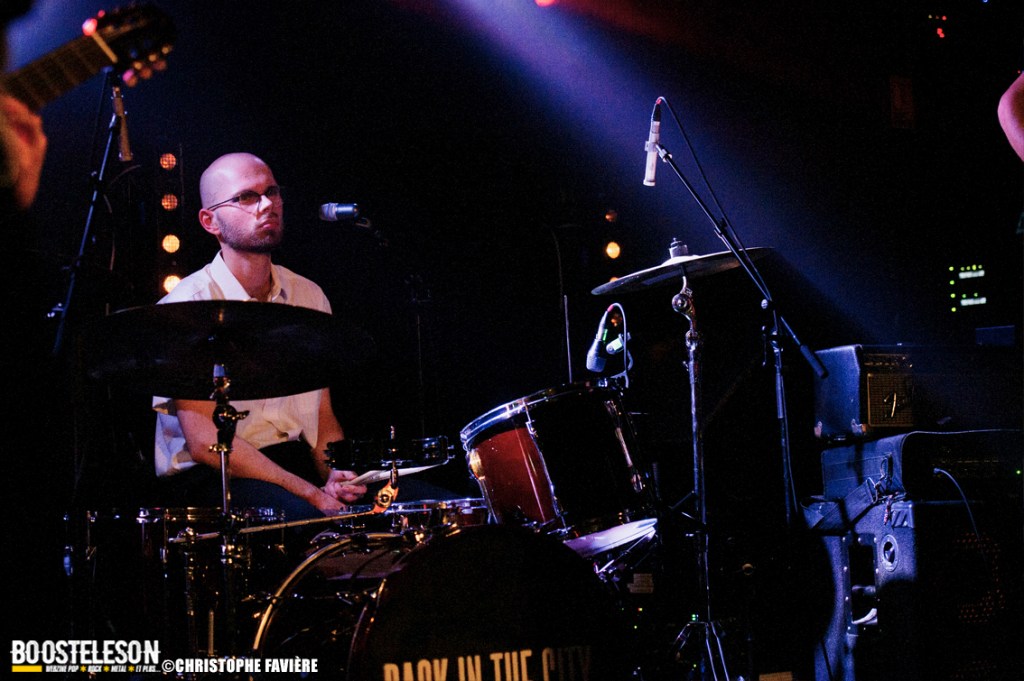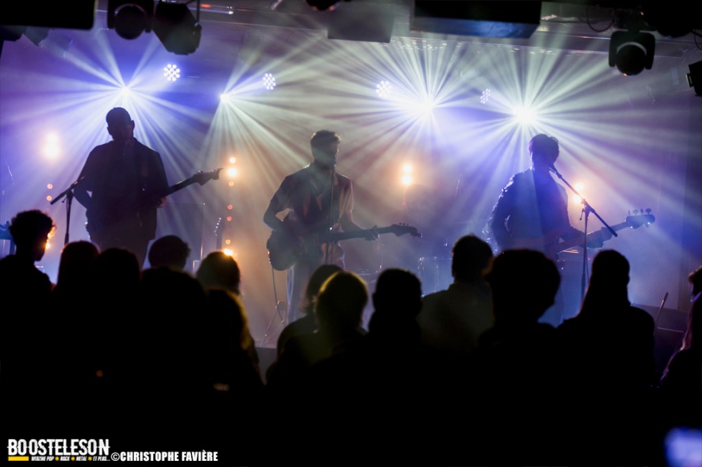 Les soucis techniques du début réglés, Back In The City entame le show pied au plancher et confirme le bien que nous en avions pensé en première partie de Mazingo (live report ici ->). Leur Rock Pop fait mouche auprès d’un public conquis. Une guitare sèche supplémentaire fait son apparition sur quelques titres et le groupe nous offrira un inédit avec « Space Invader » écrit la semaine précédant le concert. Petit bémol, les trop nombreux changements de rythmes ont un poil freinés la montée en puissance du concert, de petits ajustements de setlist seraient peut-être à prévoir… Cela n’empêchera pas une fin de concert de folie avec un guitariste sautant dans le public au milieu d’un pogo. Le pauvre remontra sur scène avec une cheville en vrac ! Malheureusement le concert s’arrêtera avant la dernière chanson prévue sur la setlist car l’heure c’est l’heure. Le groupe, tout comme le public ne cachera pas sa frustration de ce problème d’horaire, mais tout le monde se retrouvera au stand de merch pour terminer cette belle soirée.