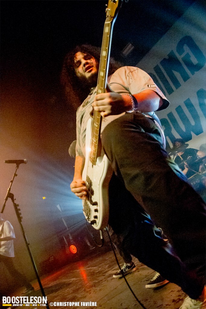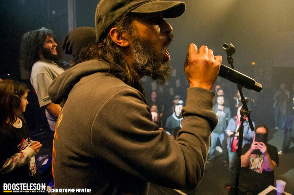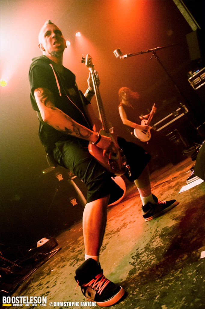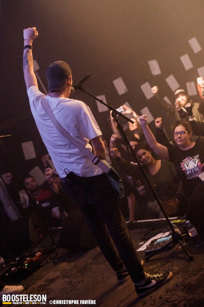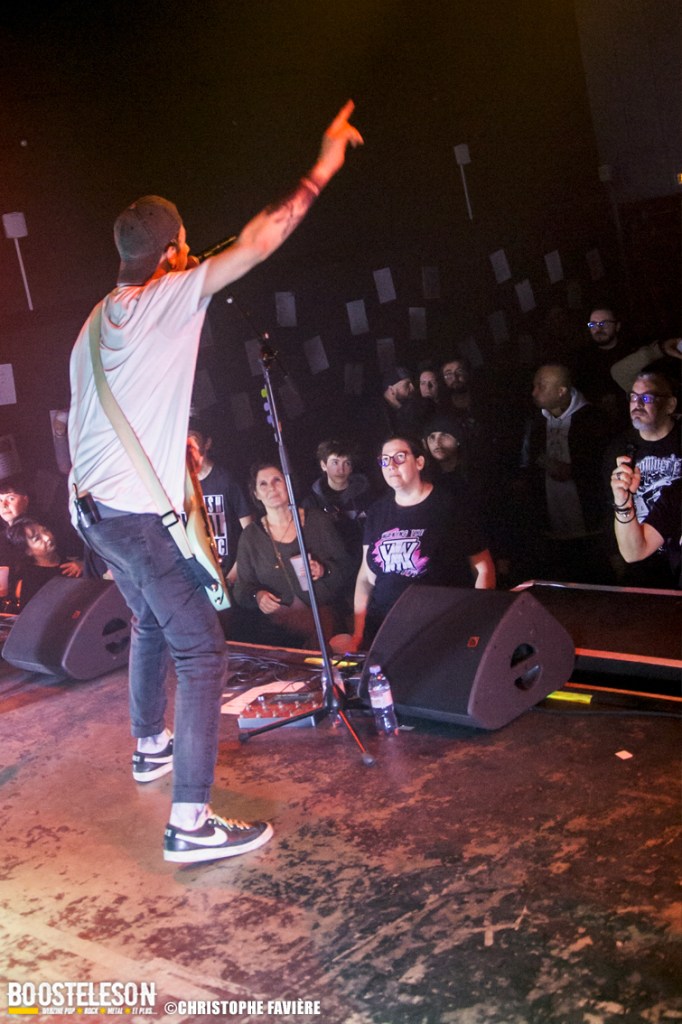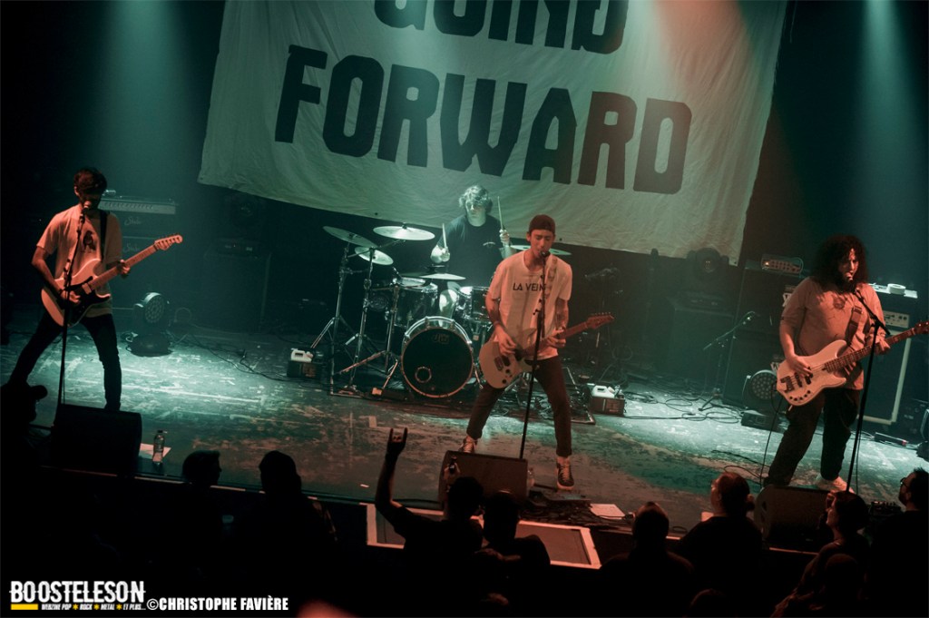 La première grosse claque de la soirée viendra de Going Forward, Leur Punk à roulettes est d’une efficacité redoutable et l’énergie qu’ils dépensent à défendre leur musique est communicative. Le chanteur/ guitariste est un véritable Zébulon hyper communicatif avec le public. D’ailleurs cela se terminera par une invasion de la scène et un joyeux bordel.