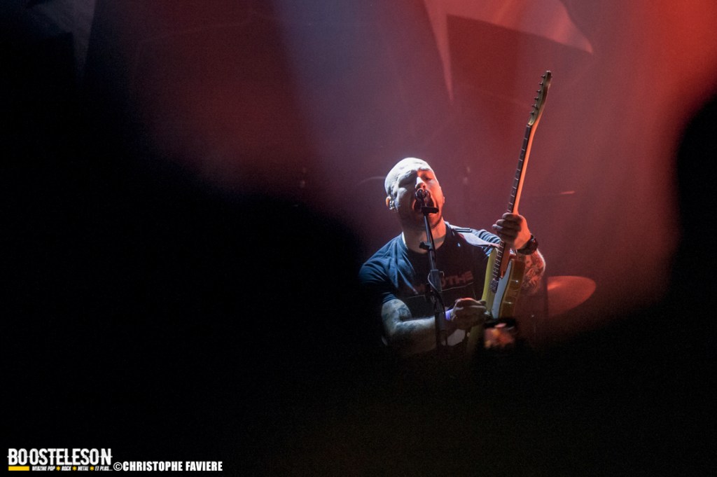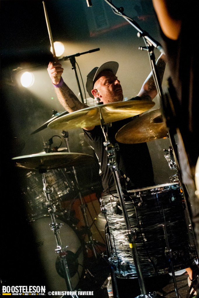 Après une petite pause méritée pour se remettre de la claque Lazarvs, la scène de Petit Bain est envahie par l’énergie brute de Planet Of Zeus. Dès les premières notes, le groupe attaque pied au plancher, offrant un show détonant qui ne laisse personne indifférent. Les musiciens semblent littéralement possédés par leur musique, projetant une énergie qui électrise le public. Le concert prend rapidement son rythme avec des titres puissants, et bien que l’on doive attendre le septième titre All These Happy People pour une légère accalmie, chaque instant est une montée d’adrénaline. La foule de Petit Bain se transforme en une véritable mer humaine de têtes qui s’agitent au rythme des riffs distillés par les Grecs. Chaque refrain est repris par le public créant une connexion incroyable entre les artistes et les fans. Et que dire de la qualité vocale ! La voix de Babis Papanikolaou (guitare/ chant) est telle que sur album. C’est vraiment impressionnant de voir un tel niveau de performance live, où chaque note est arrachée avec une intensité parfaite. La batterie de Serapheim Giannakopoulos et la basse omniprésente de Giannis Vrazos jouent un rôle essentiel dans le son riche de Planet of Zeus, ajoutant de la profondeur à chaque morceau. Le guitariste Stelios Provis, de son côté, au taquet depuis le début, assure les chœurs et déploie des riffs faisant vibrer la salle. L’apothéose viendra avec le rappel et la paire Leftovers/ Vigilante provoque une véritable explosion dans le public avec pogos et slams, et laissant des souvenirs bien gravés dans le cœur du public présent ce soir.