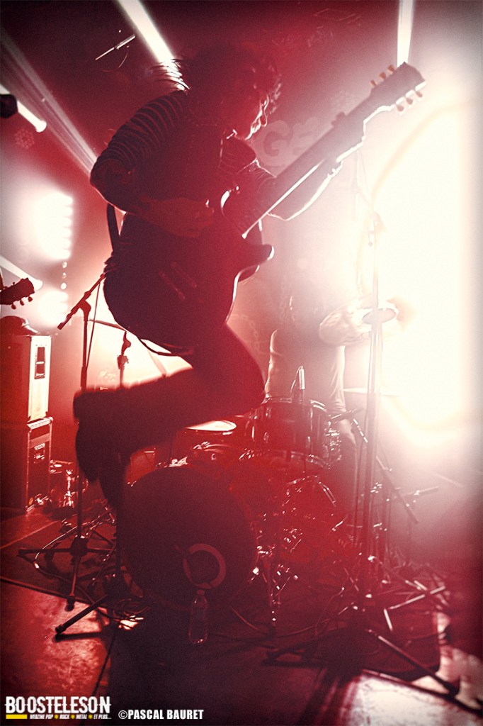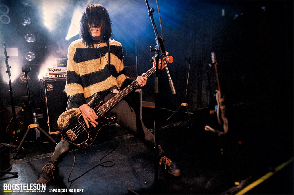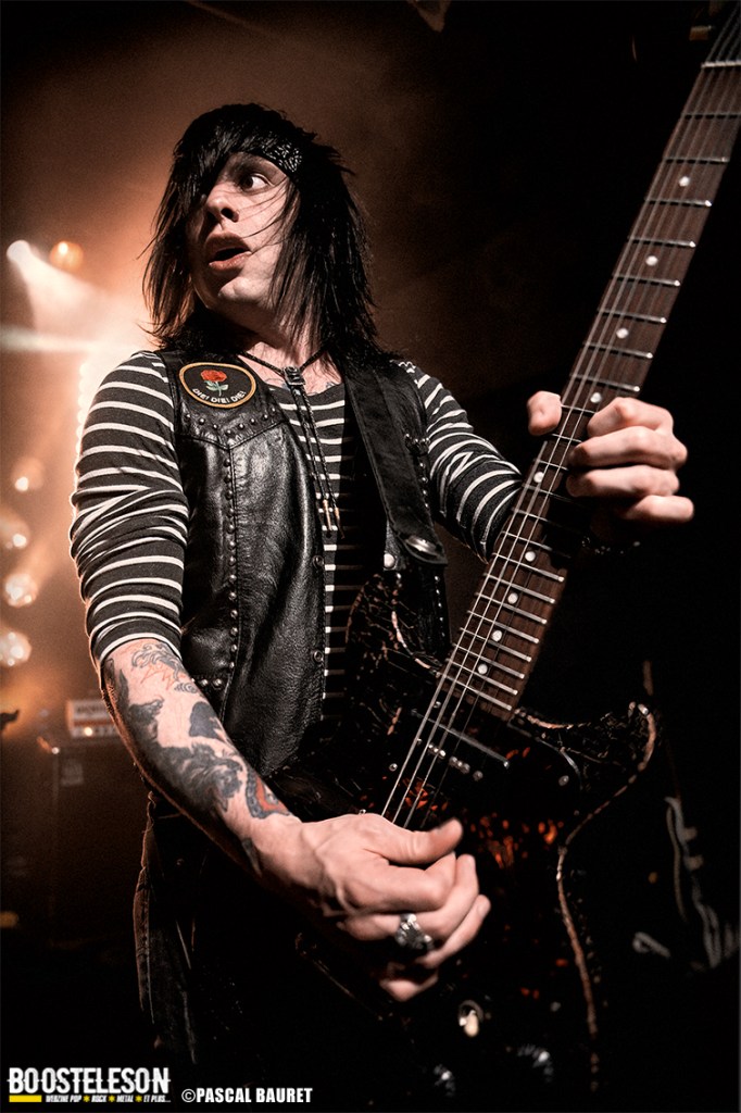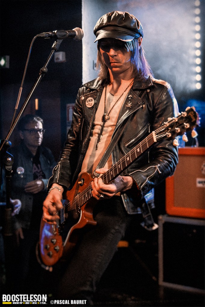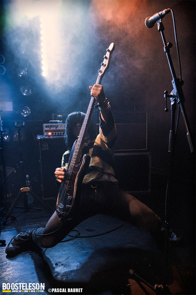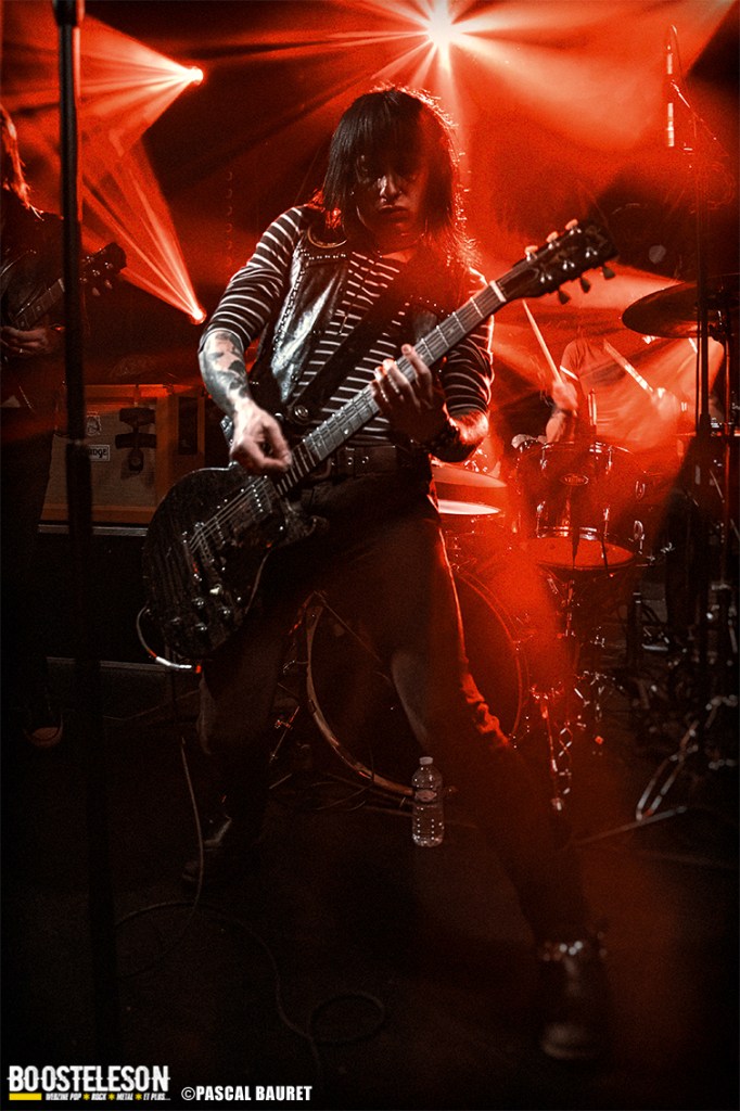 Les premiers à monter sur scène furent les Lipstick Vibrators. Le concert commence sobrement dans le noir, les musiciens s’installant avant de lancer leurs morceaux, entrecoupés de commentaires et d’anecdotes par le chanteur. Les fans de la première heure étaient là, dansant devant la scène. La salle, bien que légèrement clairsemée, permettait aux photographes de circuler facilement devant la scène pour trouver les bons cadrages. Les musiciens allaient à l’essentiel, et le chanteur faisait le show en jouant avec le micro, et terminant torse nu sous l’effet de la chaleur.