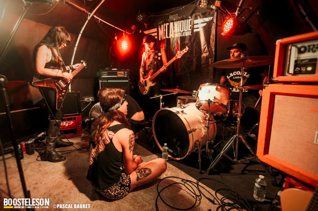 L’installation prend fin, et les Darts montent sur scène. Nicole Laurenne, l’indomptable frontwoman, attaque son orgue Farfisa comme une rockeuse en transe, grimpant dessus, le démontant, le domptant à coups de riffs psychédéliques. À ses côtés, Lindsay Scarey, Rebecca Davidson et Rikki Watson assurent un groove furieux. Le garage rock des Darts est tout sauf sage : sauvage, sensuel, rétro. Le groupe balance des titres extraits de Nightmare Queens, mais aussi quelques inédits du prochain album. Nicole, fidèle à son franc-parler, tente même quelques explications en français, au grand bonheur de la foule étouffée par la chaleur… et l’excitation. Elle nous a même appris la danse de la chauve-souris.