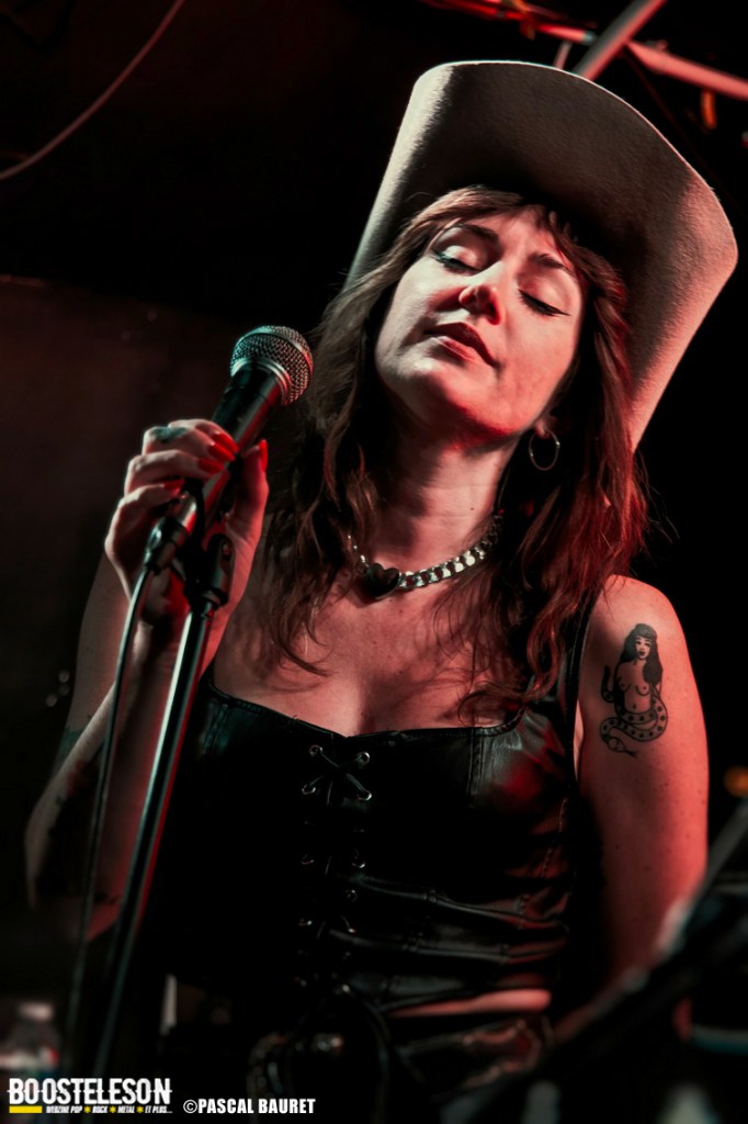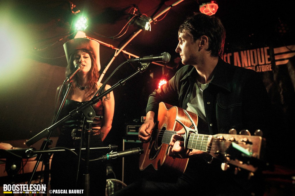 Le duo parisien ouvrait le bal avec finesse : Tiphaine Robert au chant (également batteuse chez Roberta Lips), et Lucas Humbert à la guitare (membre de Howlin’ Jaws). Leur style ? Un hommage au Tulsa sound, savant mélange de country, blues et romantisme à la June Carter & Johnny Cash. Guitare subtile, deux voix complices, une atmosphère intimiste. Le public, déjà conquis, profitait d’un rare moment de délicatesse… avant le chaos.